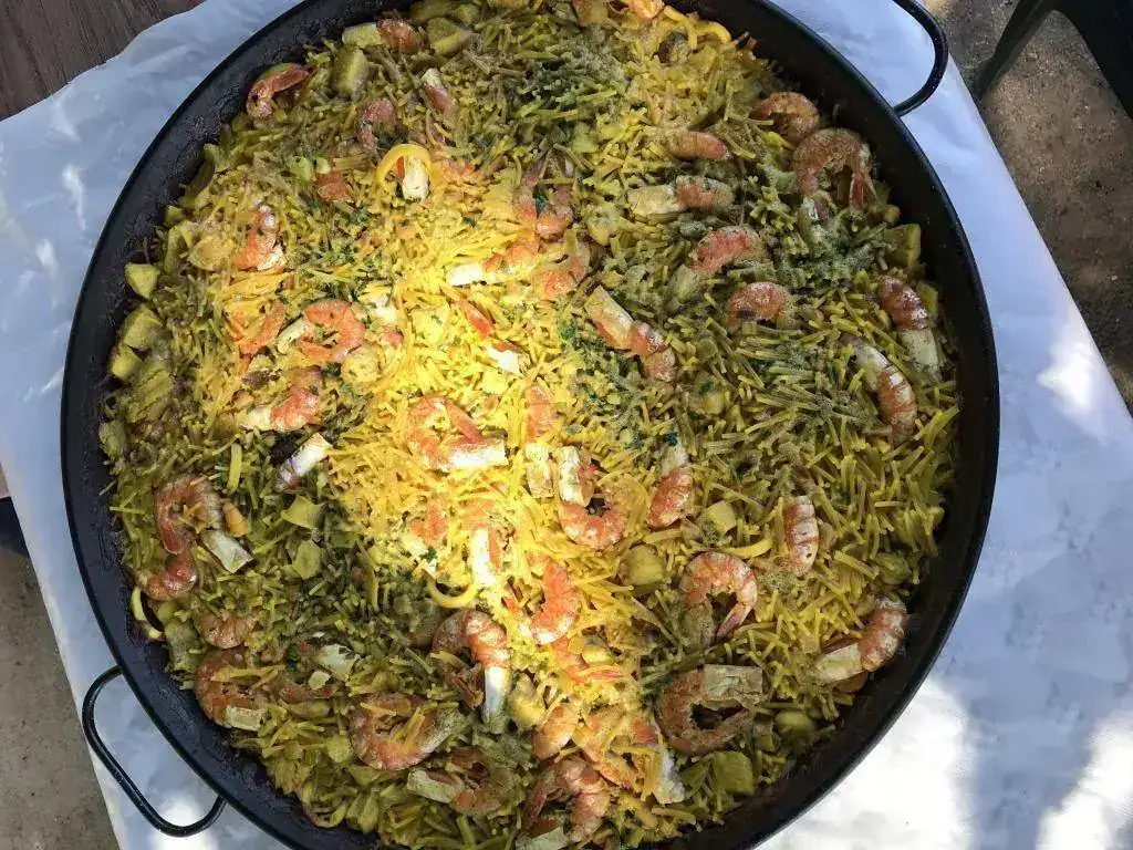 vamos a zamparnos una fideuá y luego vendrán los caféses. Los postres y las tartas, se rumorea que la abuela a echo una tarta casera de moka. Casi nada