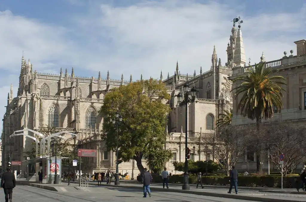 Os voy a dejar alguna imagen del acercamiento al mercadillo de la Plaza del Cabildo que, como sugiere su nombre, está justo enfrente de la catedral. Catedral de Sevilla, grande donde las haya (creo que es la 2ª o la 3ª del mundo) que hoy lucía en todo su esplendor con este sol ya casi primaveral que nos inunda como hace lo propio el Ebro allá por su paso. ¡Y hay quien se opone a dar agua para el trasvase!.