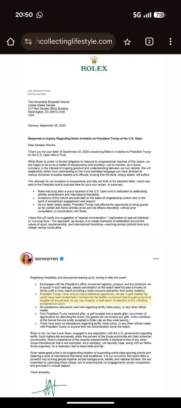Creo que esto obedece totalmente al tema de los aranceles que se trae este sujeto, otra cosa es que Rolex haya acertado o no con la invitación.