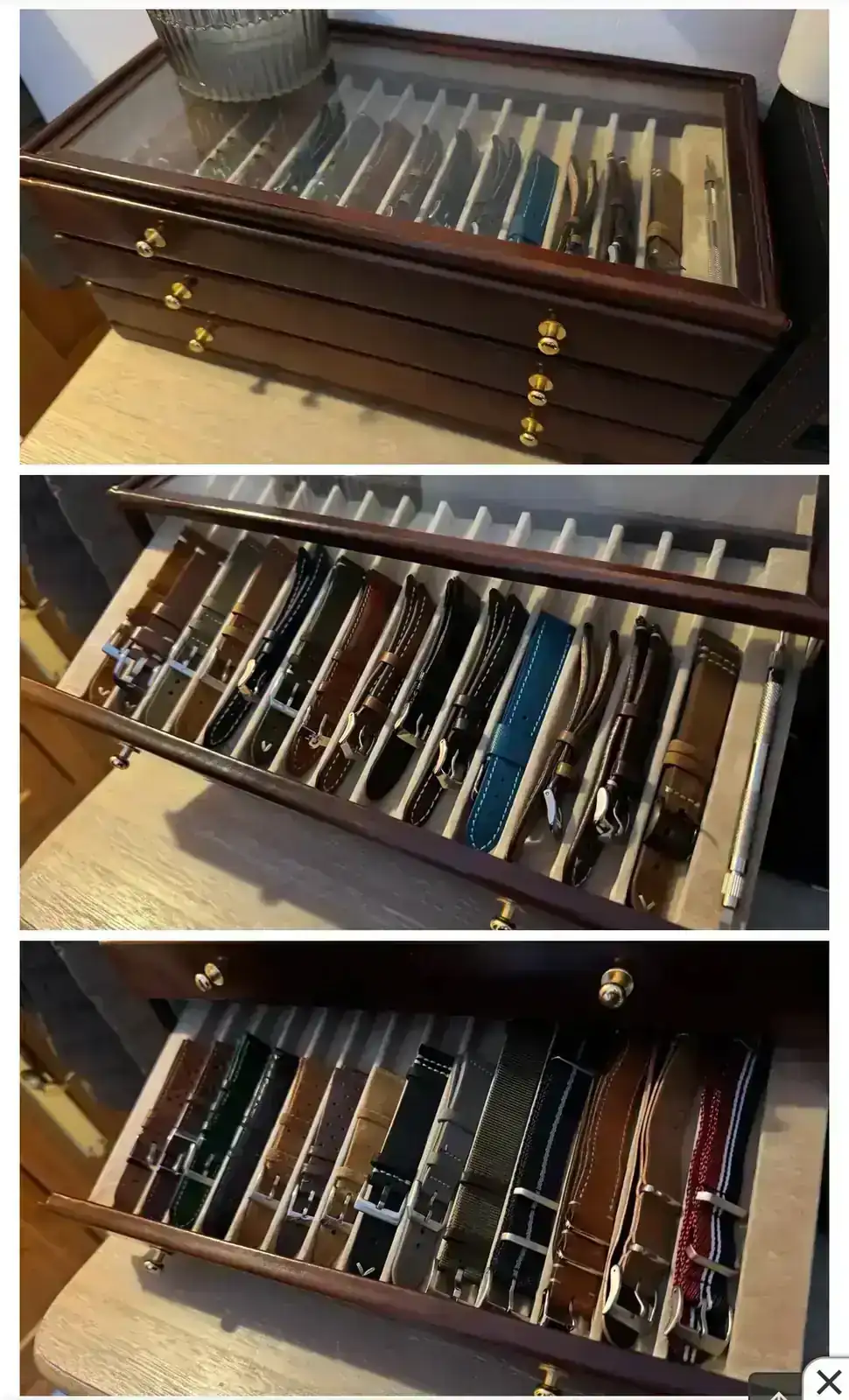 Yo las guardo en una de mis dos cajas de relojes que cuenta con un cajón en la parte inferior (compartimentado) en compañía de varias pulseras y algunos anillos, pero em materia “relojil” es peccata minuta comparado con lo que se ve por aquí. :D