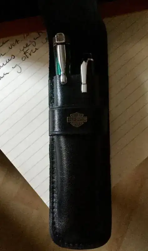 Mirar la que he encontrado por mi habitación y he rescatado ;-) una funda para dos plumas de la marca Harley Davidson :D y es perfecta para dos plumas no muy grandes: