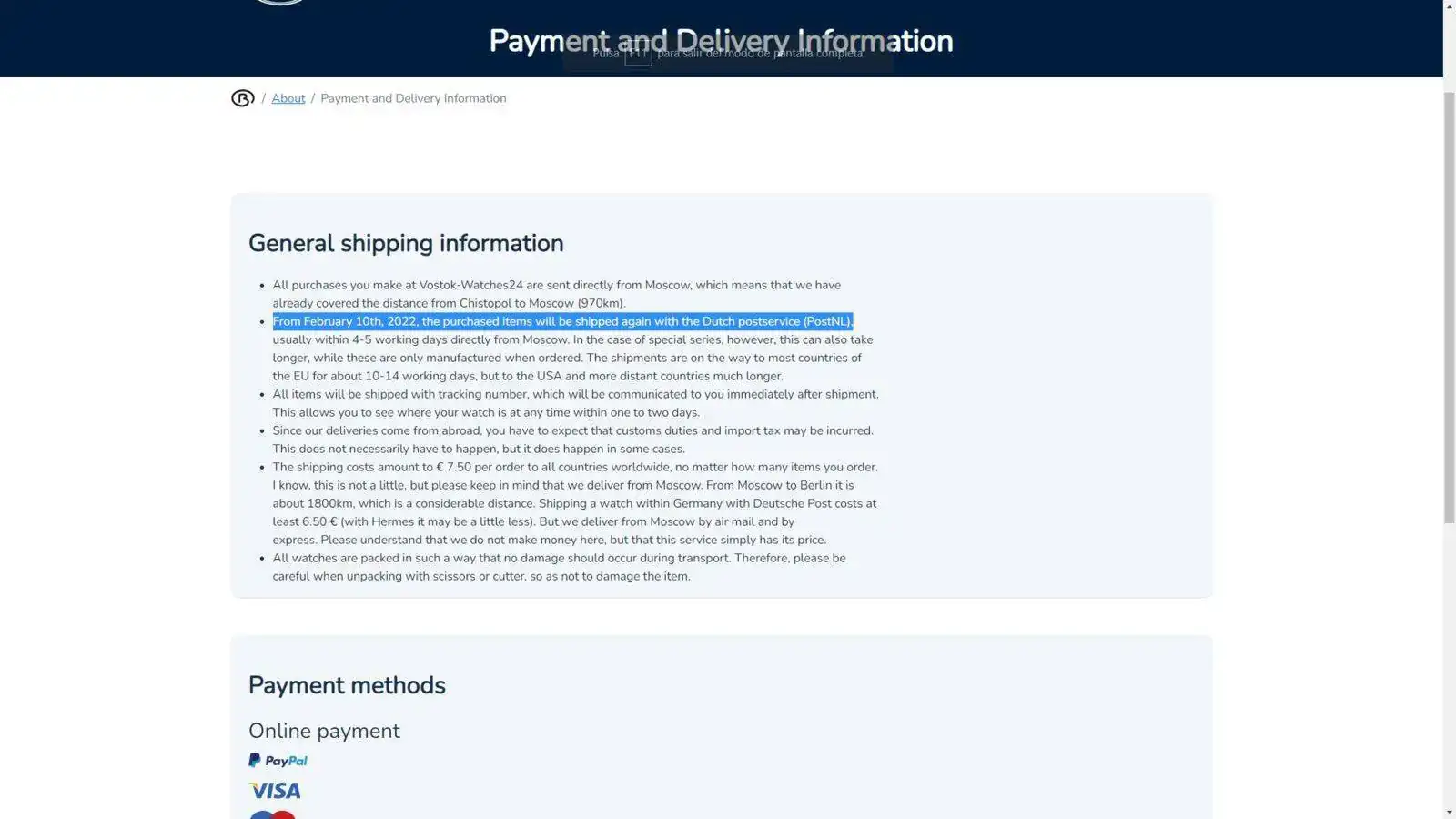 Y yo con cuatro cosas en la cesta esperando a ver si salía de nuevo la caja 710. 🤬Houston tenemos un problema. El último pedido que le he hecho a Peter me lo envía a través del correo ruso. Me ha comentado que tenían problemas con el sistema de Países Bajos y que les tardaba el camión alguna semana...