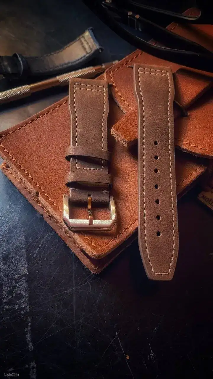 1. Correa en piel de becerro tipo flieger a estrenar. 22mm.. 25 euros