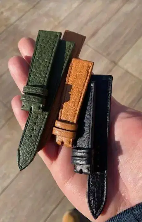 La calidad de estas correas es sublime, se llevan como una segunda piel. Cualquier tipo de cuero que trabajan en Atelier Romane, todos son suaves, nada molesta, es lo mejor que tenia yo en la muneca. El tacto del Pekari es una nueva experencia, si lo miras dices, bueno una correa negra, pero todo se cambia cuando estas tocando la correa.