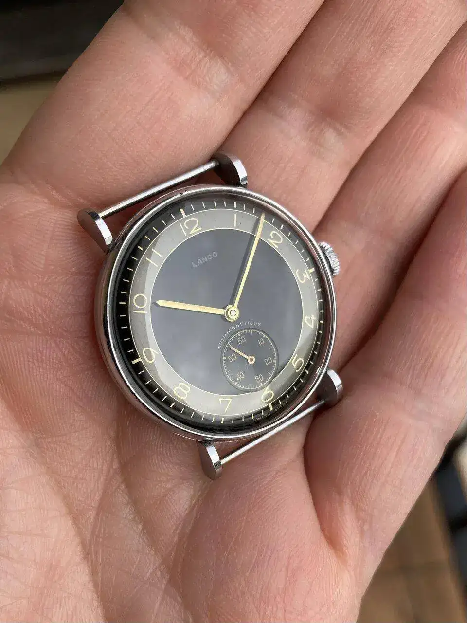 Respecto de la marca, no creo que sean Lanco. Lanco era una empresa potente que fabricaba sus propios calibres. Creo que solo al final de su andadura, por el final de los 60 y en los 70, empezó a montar calibres de otras casas en algunos de sus relojes. En los 40/50, que es cuando dato estos relojes, pienso que deberían montar calibres manufactura. Además, la grafía utilizada no se parece a la que he podido ver en otros lancos de la época y la calidad de su impresión parece bastante inferior a la del resto de elementos del reloj.