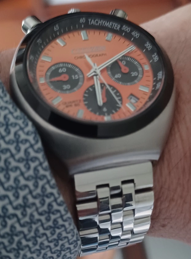 La idea era buscar una pulsera de acero, a un precio razonable, de ancho continuo o, al menos, con una diferencia entre extremos no muy acentuada (la de serie, además de ser muy finita/ligera, se estrecha bastante en el cierre, lo que transmite cierta sensacion de endeblez) y que aportase peso/textura.