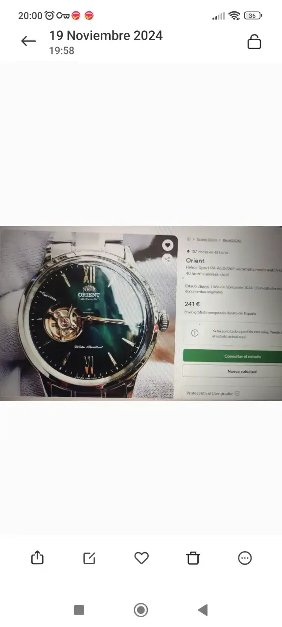 Es muy bonito, te queda muy bienEl orient ya llegó, más guapo en persona que en las fotos, me da que va ser el que más me va gustar de los tres . Cuando llegue el otro ya os pondré foto.