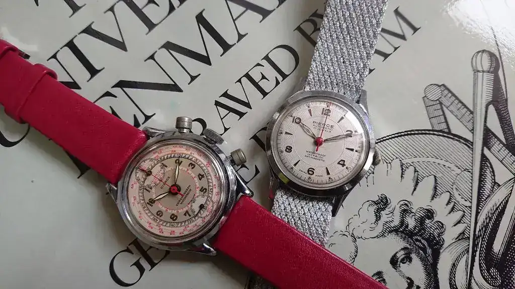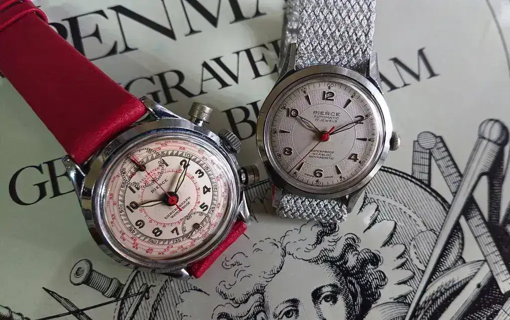 Pierce es una casa relojera por la que siento simpatía. Está claro que no es una de las grandes, pero se lo curraban mucho y sus piezas tienen algo que me resulta irresistiblemente encantador. También debo reconocer que esa simpatía tiene que pelear con el miedo que me produce la proclamada delicadeza de sus singulares calibres manufactura y la complejidad de reparación que ofrecen, tanto por el disgusto que despiertan entre los relojeros como por la dificultad de hallar fornituras. Pero bueno, a veces en esto de los relojes hago cosas que no encajan especialmente bien con lo que pienso, contraviniendo los dictados de mi sensatez e incluso la voz de mi querido jefe de compras/Pepito Grillo/resignado esposo. El caso es que tengo bajo mi custodia dos hermosísimos Pierce, especiales a la par que delicados (no tengo claro si poner a continuación el emoticono del miedo o el exultante, así que lo dejo sin nada