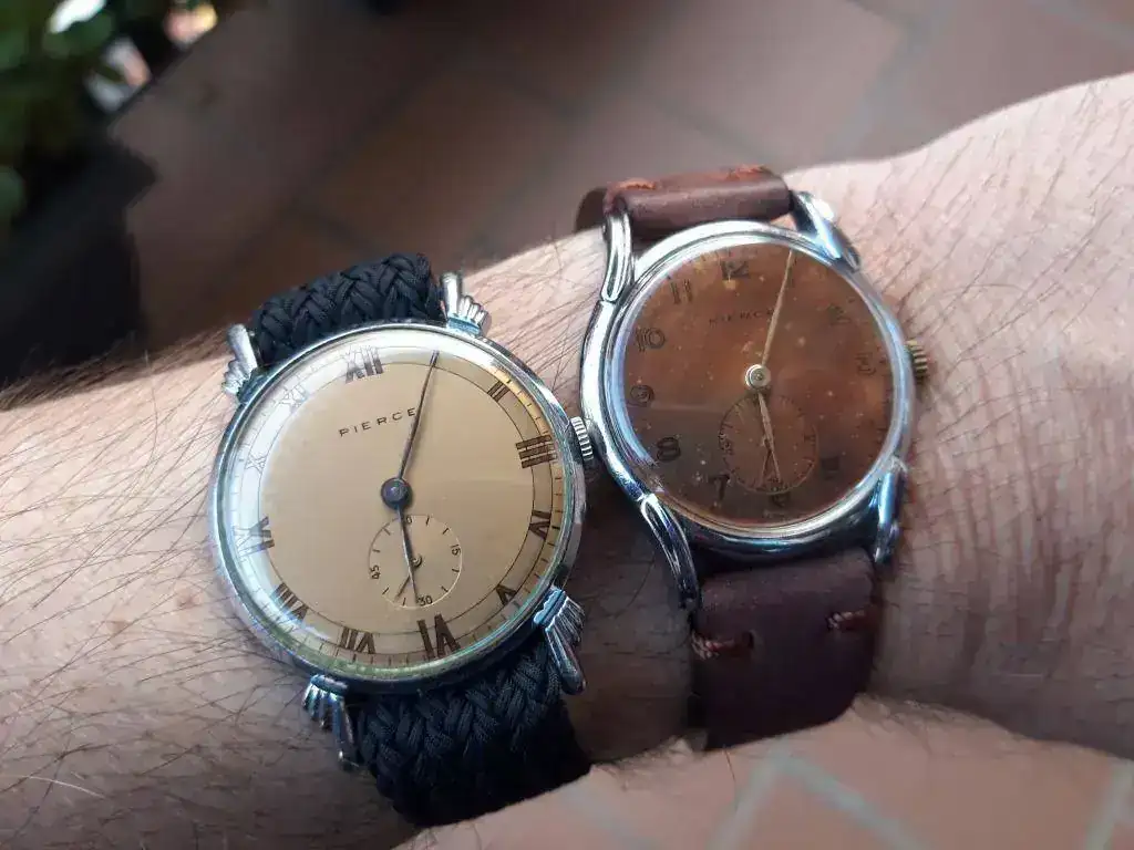 Por tanto, para no repetirme, aquí sólo pondré unas cuantas pinceladas para arropar mis dos ejemplares y situarnos rápidamente ante el tipo de relojera que fue Pierce. Para conocer su historia detallada y sus otros modelos os remito a los hilos citados y sus correspondientes enlaces