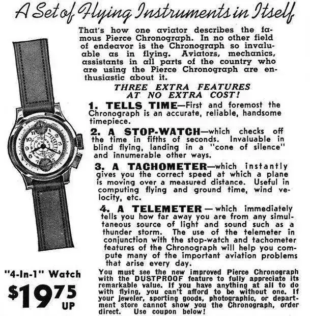 Iniciada la década de 1940 se convirtió en el reloj oficial de los pilotos de Trans Caribbean Airlines, y también las Fuerzas Aéreas británicas le encargaron una partida para sus pilotos de combate y otro personal de aviación. Eso siempre da bastante caché y además es un estupendo argumento publicitario