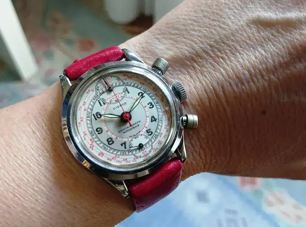 Aparte de la vagancia de ponerme, una vez puesta, me daba cuenta de que no terminaba de ver cómo plantear la presentación, y es que son varios los hilos que se han publicado en nuestro rincón sobre Pierce. No hace mucho la marca ha sido objeto de atención de nuestro querido y exhaustivo Cesc en dos hilos bien prolijos: https://relojes-especiales.com/threads/historia-marca-pierce-version-1.452464/ y https://relojes-especiales.com/threads/historia-marca-pierce-version-2.452465/. Y hace más tiempo también el añorado compañero Joler le dedico un hilo bien amplio: https://relojes-especiales.com/thre...ada-calibre-103-con-segundero-central.341378/