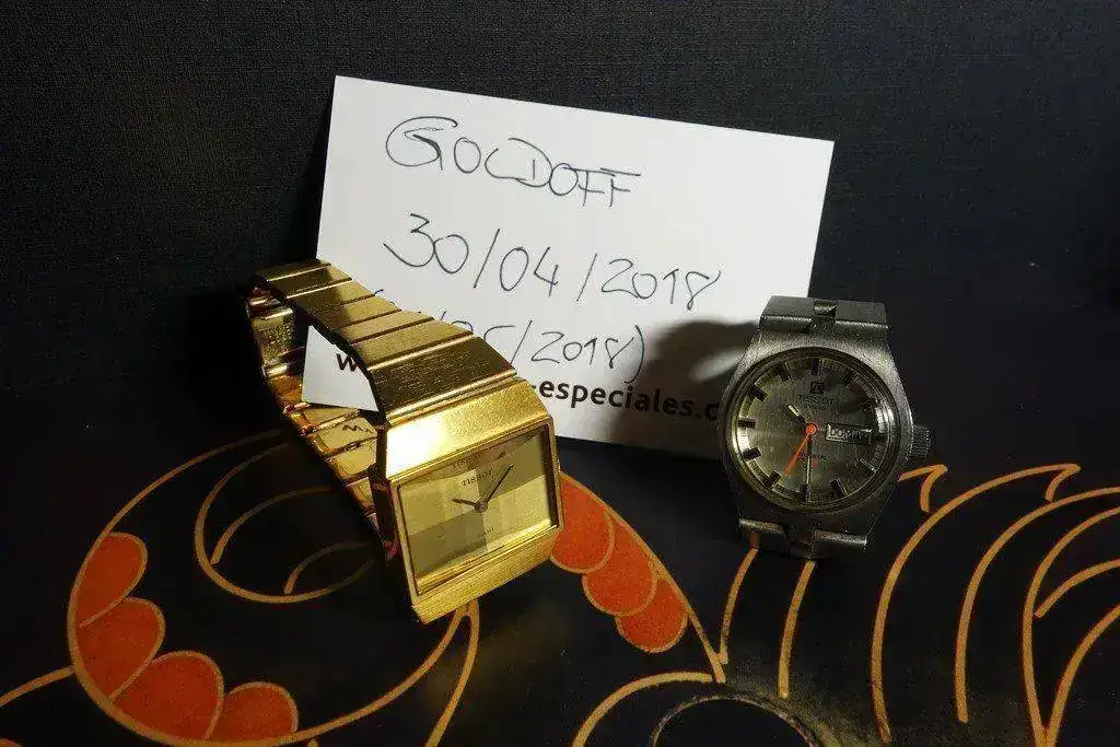 Se trata de un PR-516-GL de esfera blanca y carga automática y un Sari dorado con un espectacular e impoluto cristal facetado que realza su elegancia. Este último es de carga manual. Ambos están en buen estado, las traseras no tienen ni una raya. Para el resto me remito a las fotos.