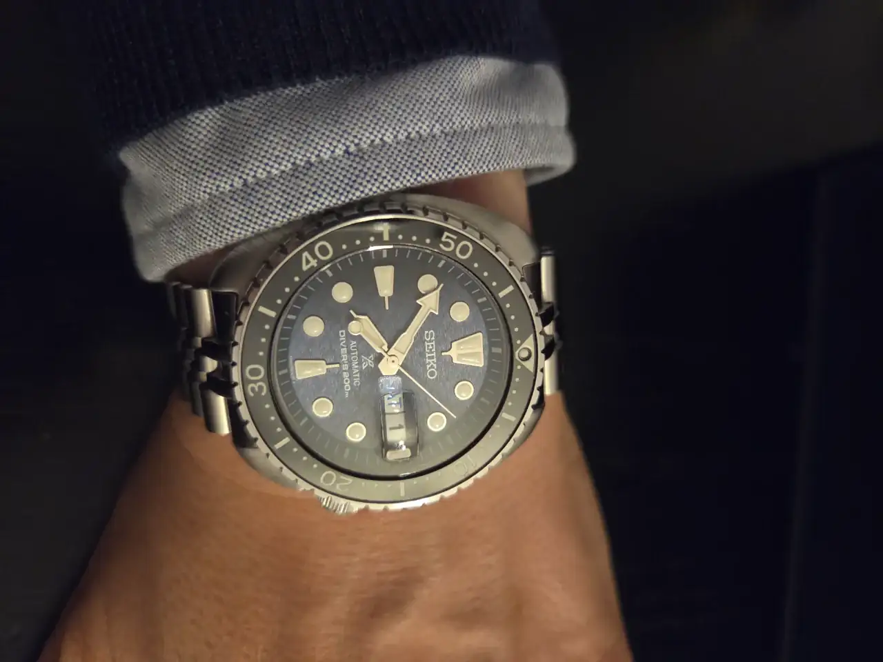 Y otro seiko, un king tortuga dark manta ray, al que le he puesto un brazalete de uncle strap. No suelo cambiar las correas originales, pero con este hice una excepción.