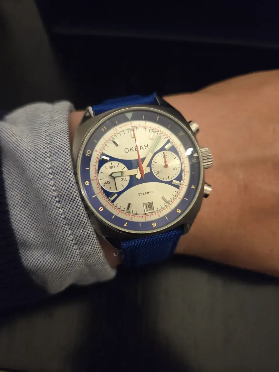 Poljot okeah final edition. Quería un crono con 3133 y este es el que más me gustaba. Era difícil ver uno en buen estado y con esta reedición pude tenerlo casi como nuevo.