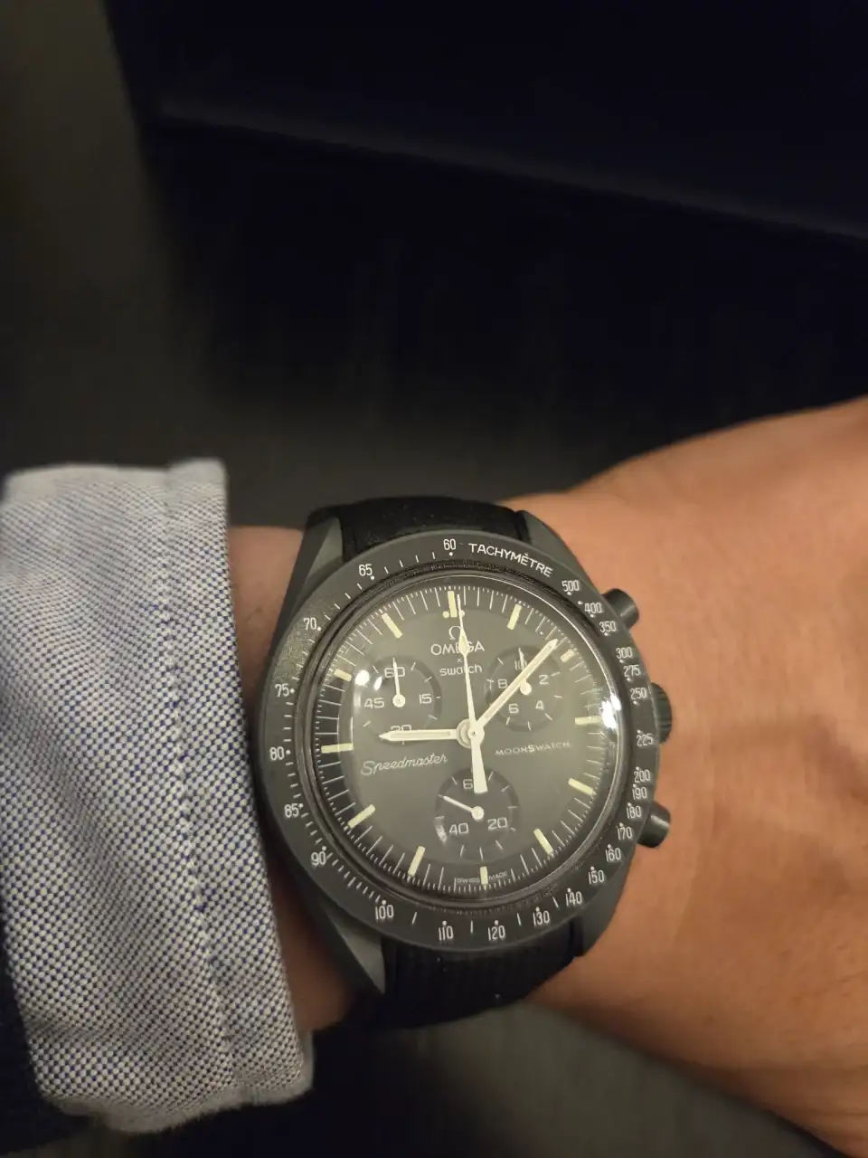 Moonswatch mercurio. El fenómeno de la década en relojería, quería uno pero la reventa estaba plagada de falsificaciones y swatch no lo vende en Murcia. Así que tuve que esperar la ocasión para poder comprarlo. Otro al que cambié la correa.