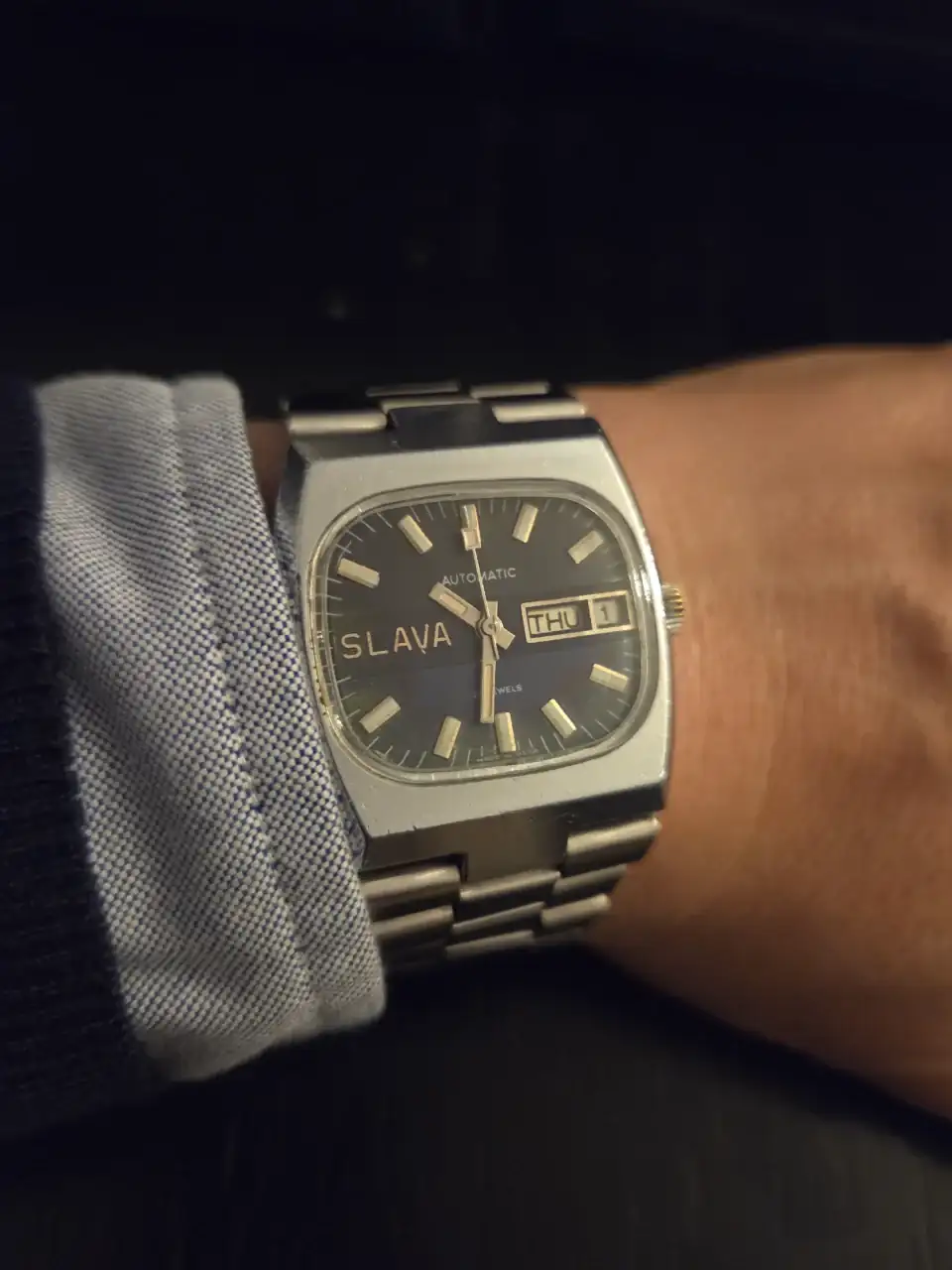 Slava Tank mecánico. Tenía uno de cuarzo que se fastidió y, cuando pude comprar uno en España, volví a hacerlo. Uno de los dos más viejecillos que tengo.