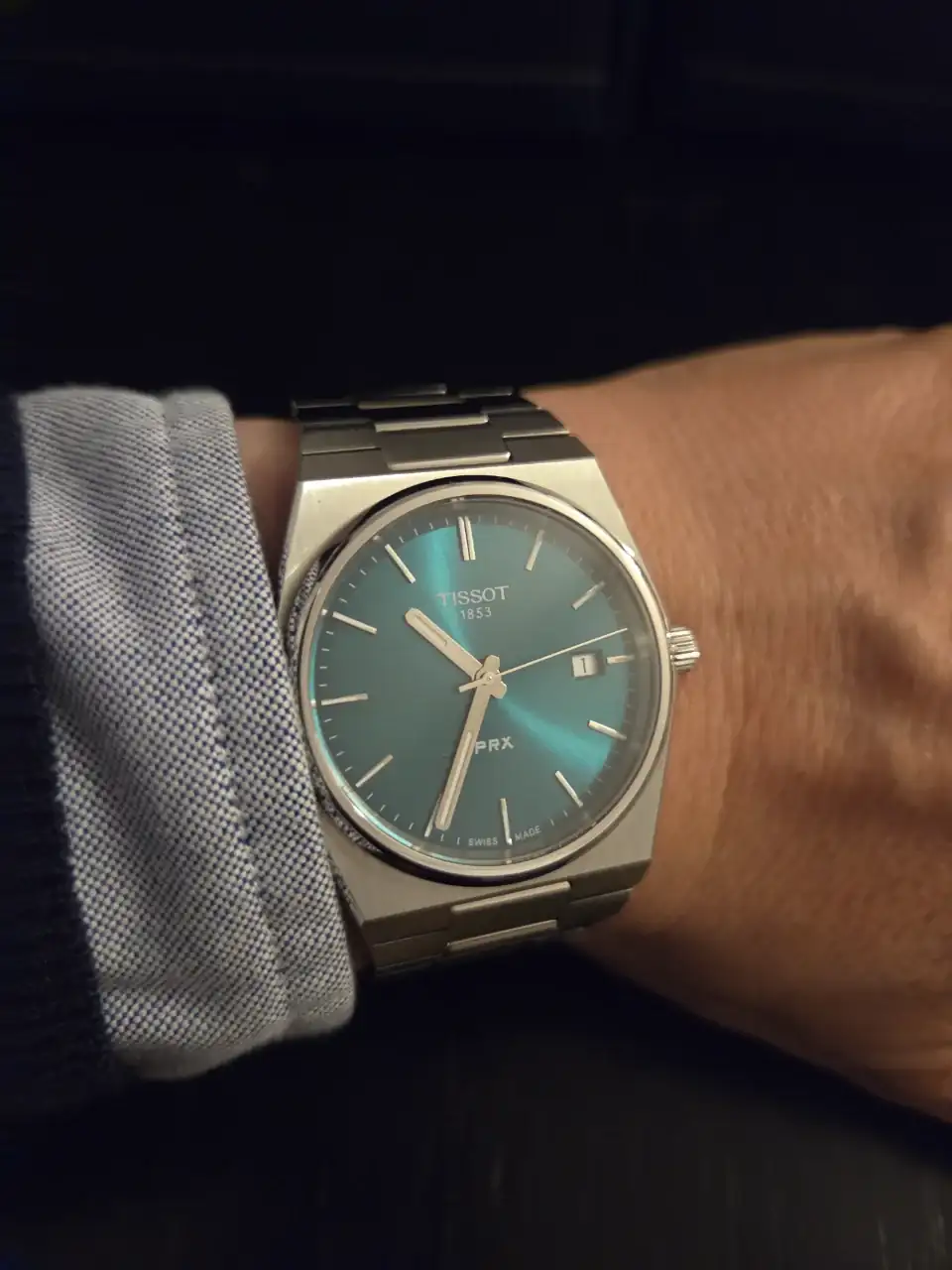Tissot prx 40mm cuarzo. Otro fenómeno moderno de la relojería. Mi mujer tiene el de 35mm en verde también. Abrió la moda de volver al brazalete integrado.