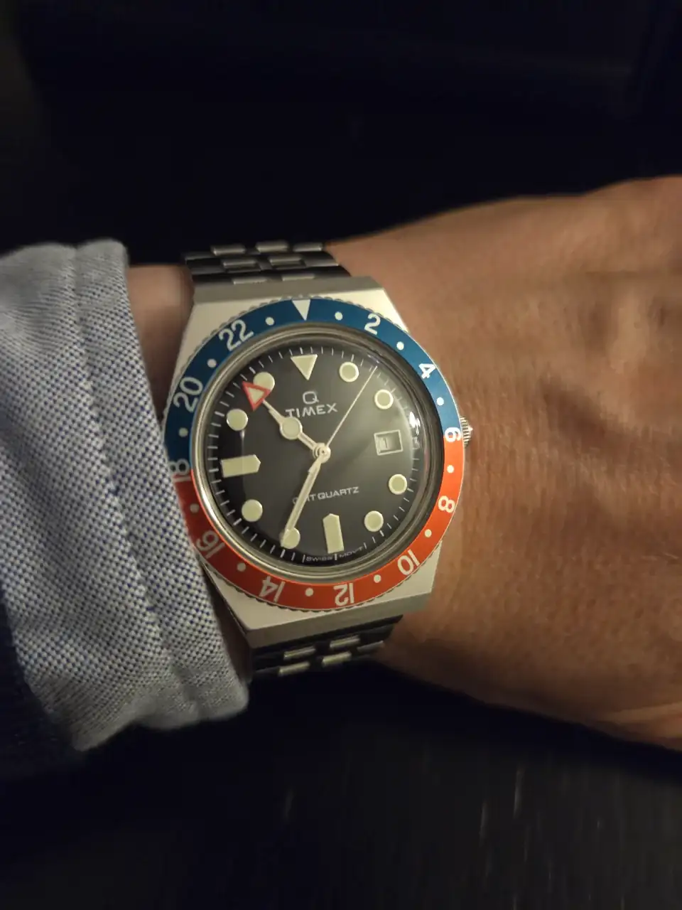 Timex Q GMT. Me gustan los resistes, reinterpretaciones...y quería un timex. Este gmt me gusta más que el original, por su brazalete mejorado y además tiene movimiento suizo.