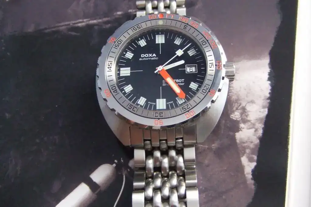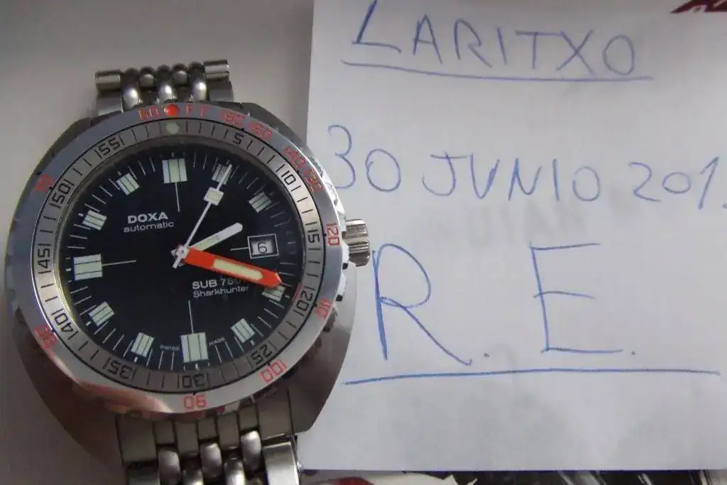 Pues para que se quede en la caja un año mas y reducir el número de relojes vendo este doxa con algún pelillo en el cierre y alguno por el lateral pero lo tengo que ver con lupa, puesto en contadisimas ocasiones ha estado guardado todo este tiempo.