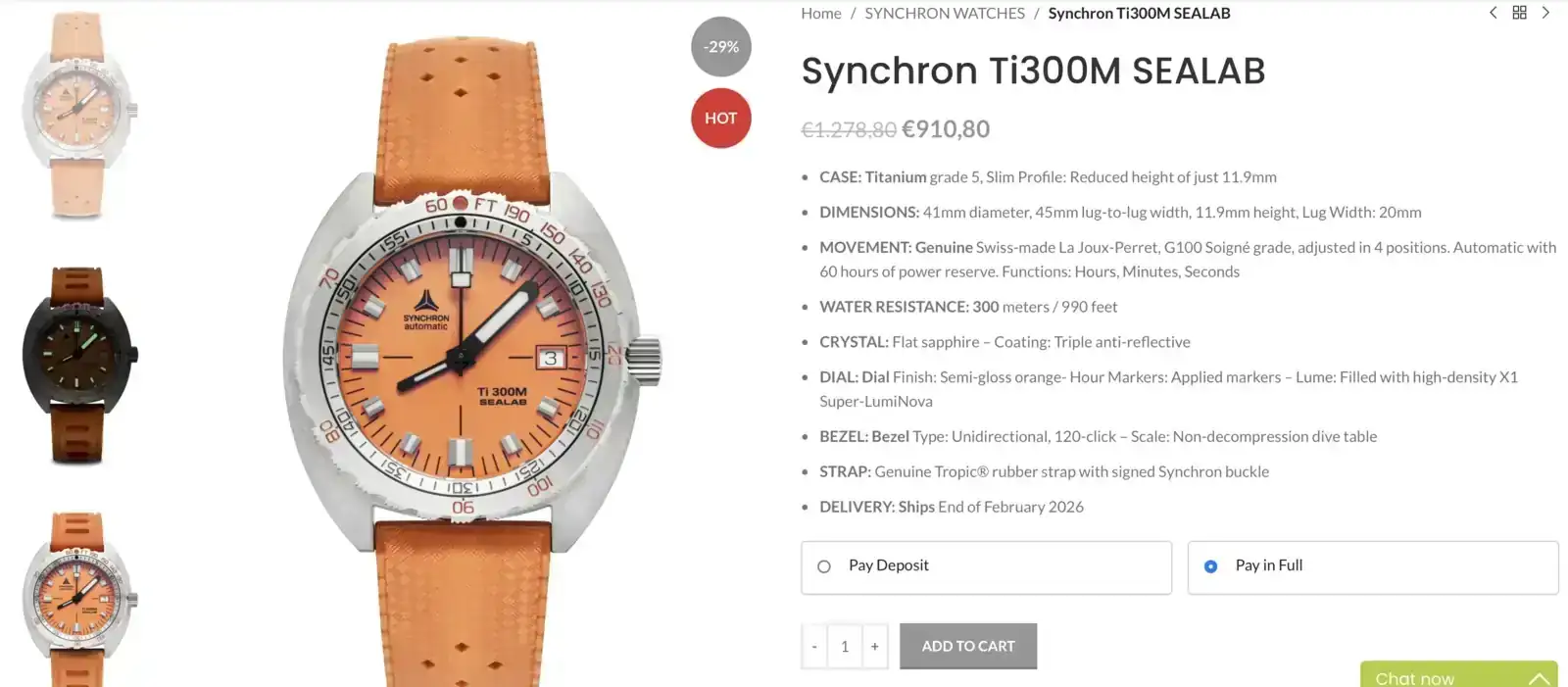 El último lanzamiento de Synchron, a la cual perteneció Doxa, es el Ti300M Sealab que presenta las siguientes características: