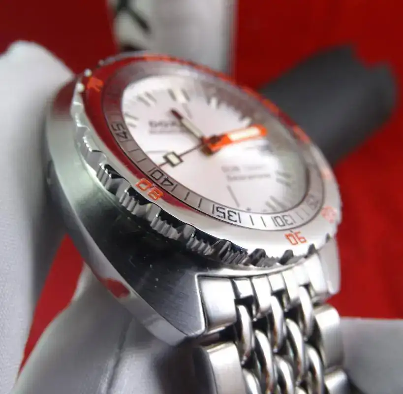 El reloj es de 2008 y se encuentra en un estado muy bueno. Destaca su brazalete característico de granos de arroz, una caja muy cómoda en muñeca, válvula de helio y una esfera hipnótica. Viene con su característico estuche y la tarjeta original de garantía.