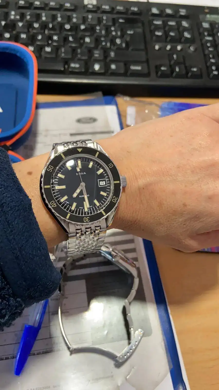Bien, una vez recibiendo la transferencia, entiendo que el martes, Doxa envío el reloj desde Suiza a Alemania y de ahí salió este lunes y ha llegado esta mañana, todo perfecto.