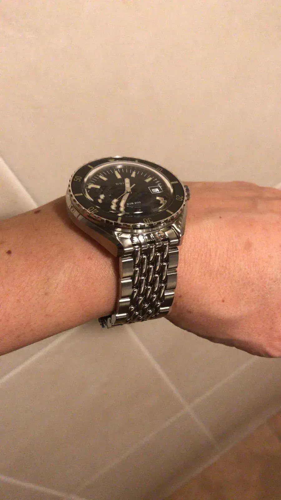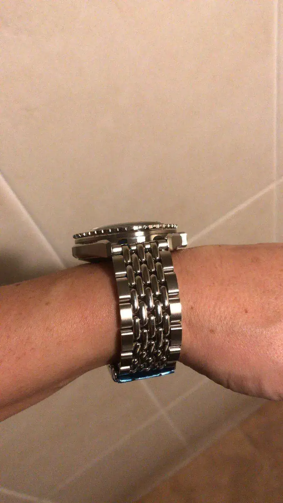 destacar que a p dar de sus 42mm, su L2L es muy corto y mi esposa que tiene una muñeca mínima lo lleva perfecto, por lo tanto, los que tengan poca muñeca o gusten de relojes grandes y temen el L2L este es su reloj, en vivo además gana.