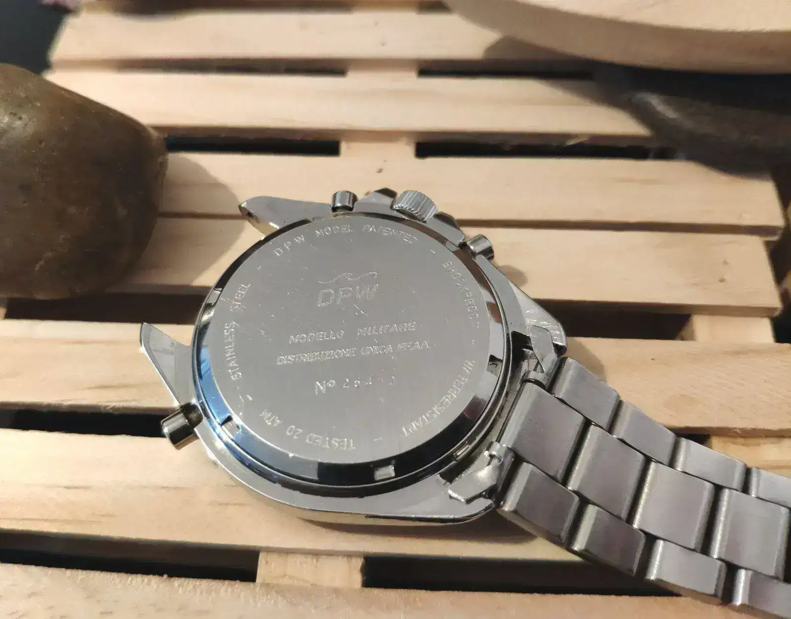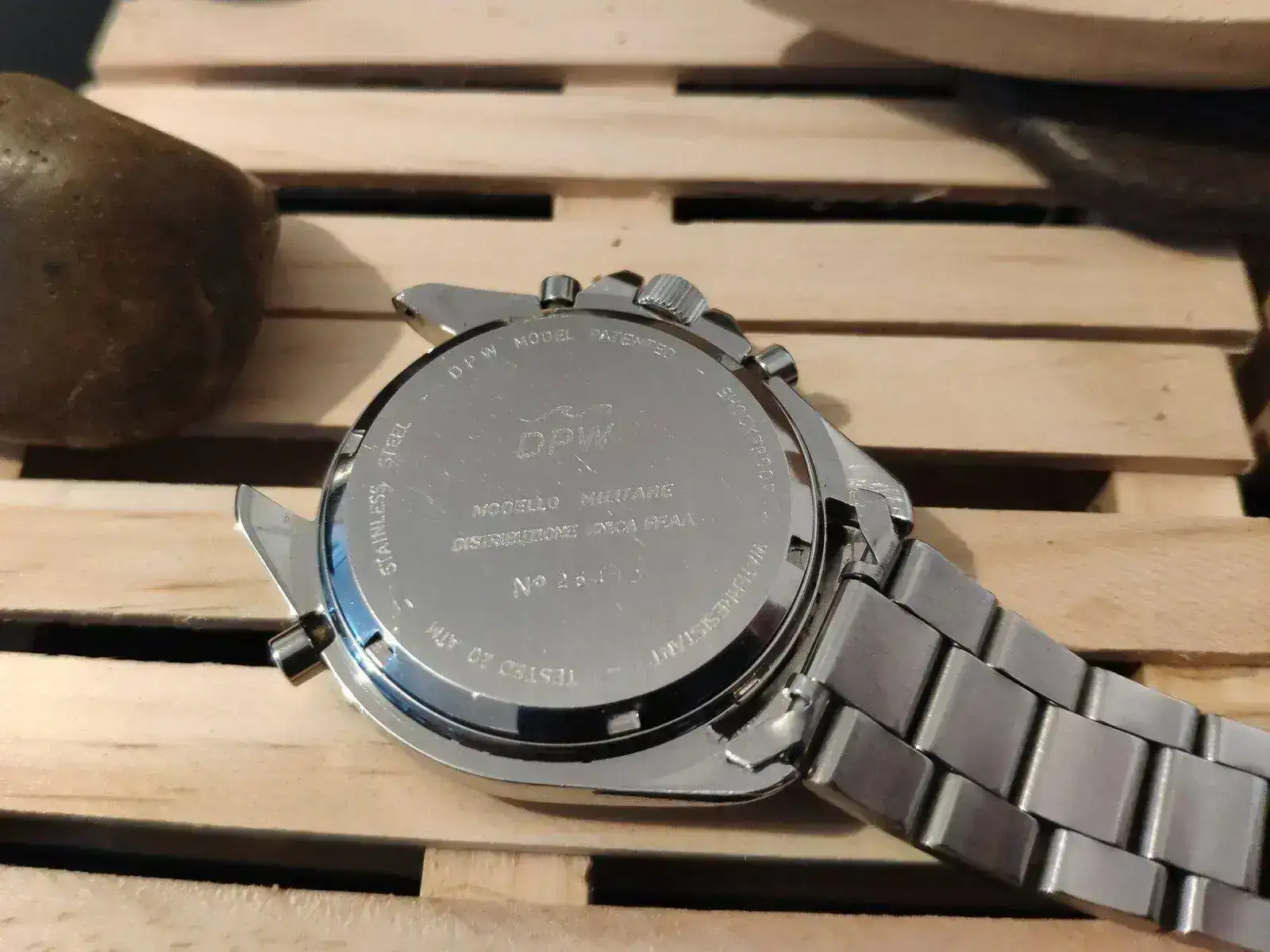 Aunque ya se ha hablado de este tema yo solo vengo a contar la anécdota, este reloj me lo trajo una tía de Italia que era de su suegro que falleció y como sabe que me encanta los relojes me lo trajo y la verdad como solo me gustan los automático, no le presté atención es más me pareció feo, así que lo limpié un poco y se lo regale a mi cuñado, a él tampoco le gustó así que lo puso en una plataforma en venta, porque quería comprar con el dinero de la venta, un reloj que le gustará... Ha los 15 días me preguntó que un comprador le había ofrecido 80 euros más 20 de envío y que aceptó venderlo por ese precio, me pareció muy raro que pagar 80 más envío, así que empecé a indagar información y este foro ya existía un tema sobre la compañía DPW que vendía relojes militares y en una parte de su historia Breitling ensambló relojes para dicha compañía..... En fin le dije a mi cuñado que haga un reembolso total del importe y que pasará por casa y me regresé el reloj y que elija uno de mi colección de automático japonés para compensar el reloj que le quitaban ahora está en un lugar de mi colección de relojes militares.