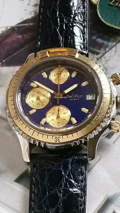 Ahh, el reloj en question a tocado un tonto, el bisel es ficho y esta mal puesto, los 180 tienen que ser a las cuatro.Es un calibre LEMANIA 5100 con contador de minutos del centro y una subesfera de 24 horas a las 12.