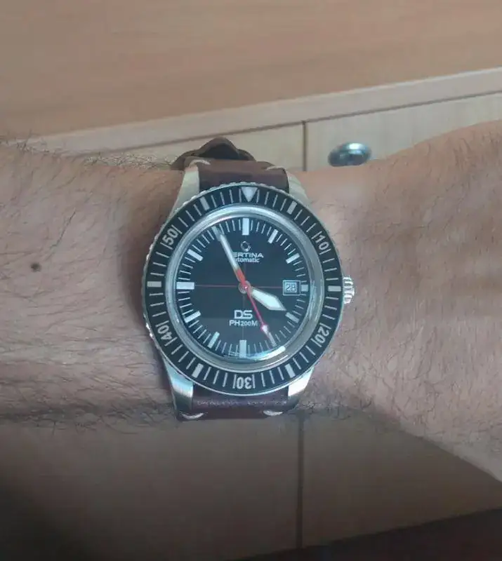 Muchas gracias por las fotos! La verdad es que a los dos os lo veo muy bien, no me da la impresión de reloj grande. Será que yo también estoy acostumbrado a una imagen similar al probarme distintos modelos tal como estamos con la moda de relojes grandes y me he acostumbrado.