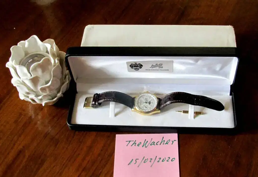 Tiene todos los periquitos propios del calibre 7751, Fase lunar, Calendario, Cronógrafo. La reserva de marcha es de 48 h.