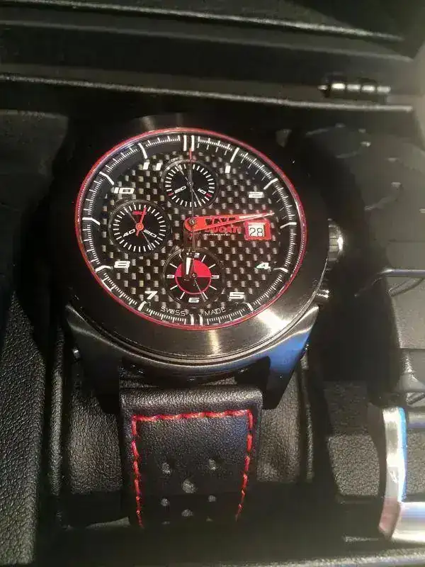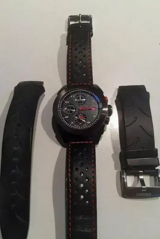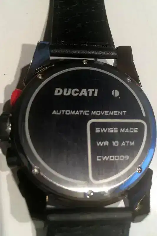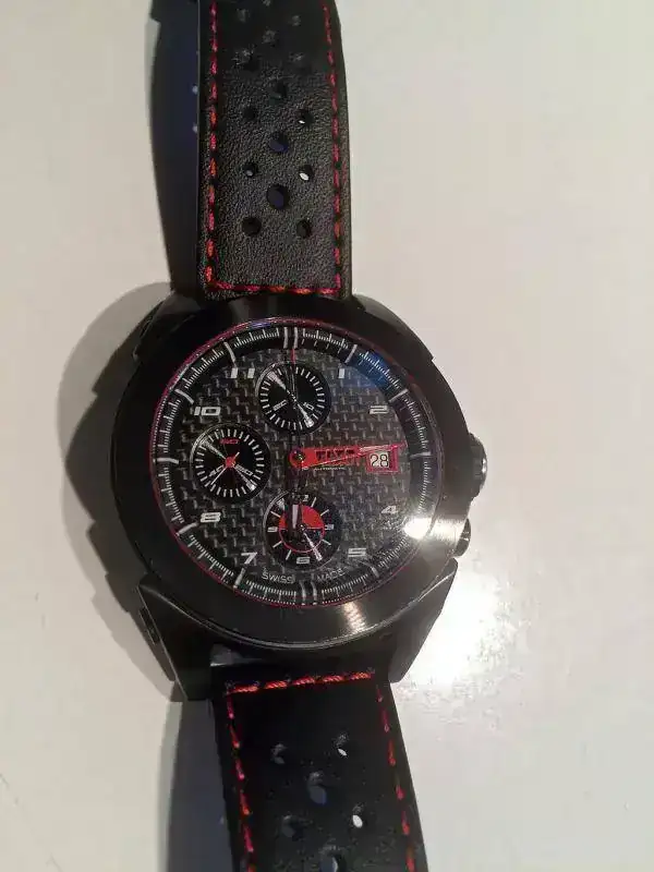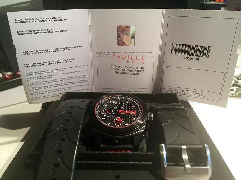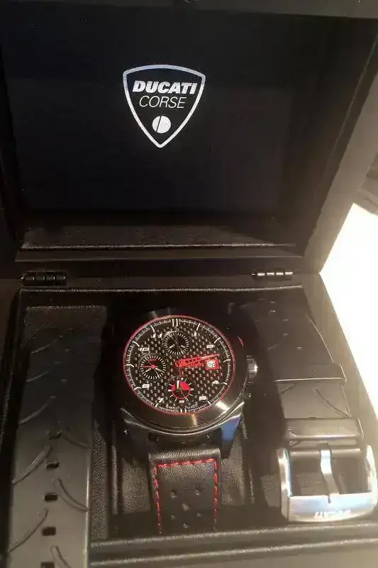 O vendo este precioso crono automático Ducati, movimiento Valjoux 7750. Esfera de carbono, cristal de zafiro curvado y fondo ciego. Correa original. Con garantia sellada y toda la documentación, con su caja de carton exterior y la de madera contenedora del reloj