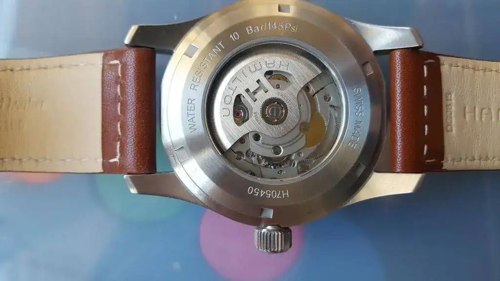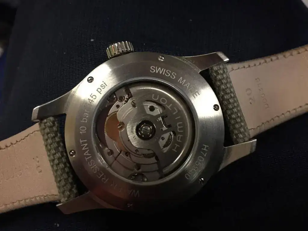 En primer lugar me llama la atención la ausencia del Swiss Made del dial. ¿Es esto una práctica habitual en Hamilton?