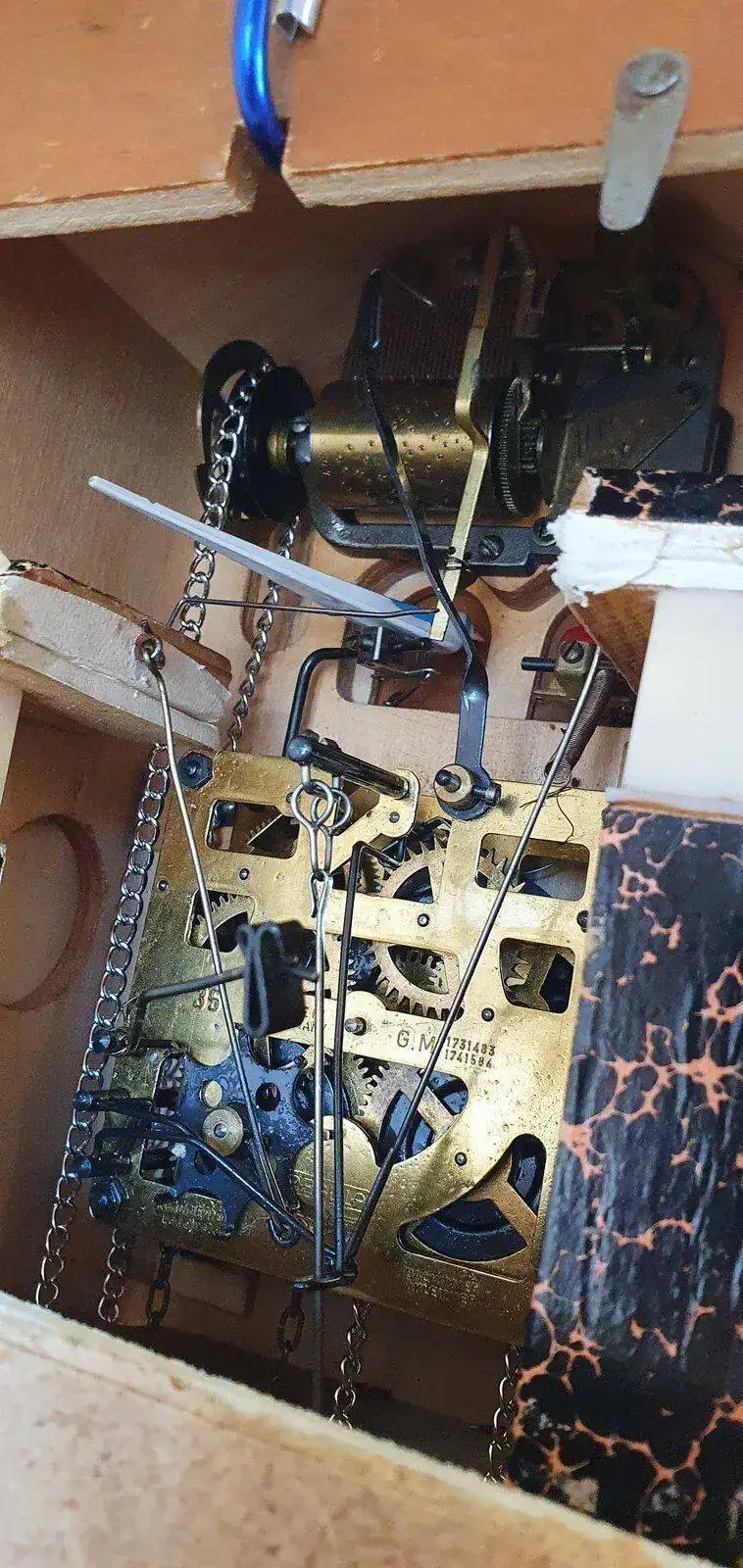 Hola buenos dias. Adquirí en un mercadillo un reloj de cuco musical la cuestión es que la música solo la hago funcionar antes de que suene el cuco, mi pregunta es como se puede ajustar para que funcione bien o quizás le falta alguna pieza? E estado mirando pero no encuentro ninguna maquinaria igual para poder guiarme o hacerme una idea muchas gracias de antemano un saludo