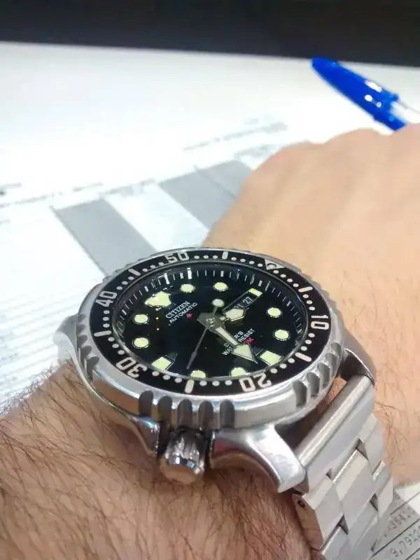 Te lo has probado ya ?El Citizen que yo mencionoson 42mm, pero incluyendo la corona, lo que quiere decir que estaría rondandolos 38mm excluyendo la corona. Y el Seiko SK007 son 42 mm sin corona, y 45 mm concorona. Muchas tela para mí, y mucho más grande que el Citizen PromasterNY0040-09W.
