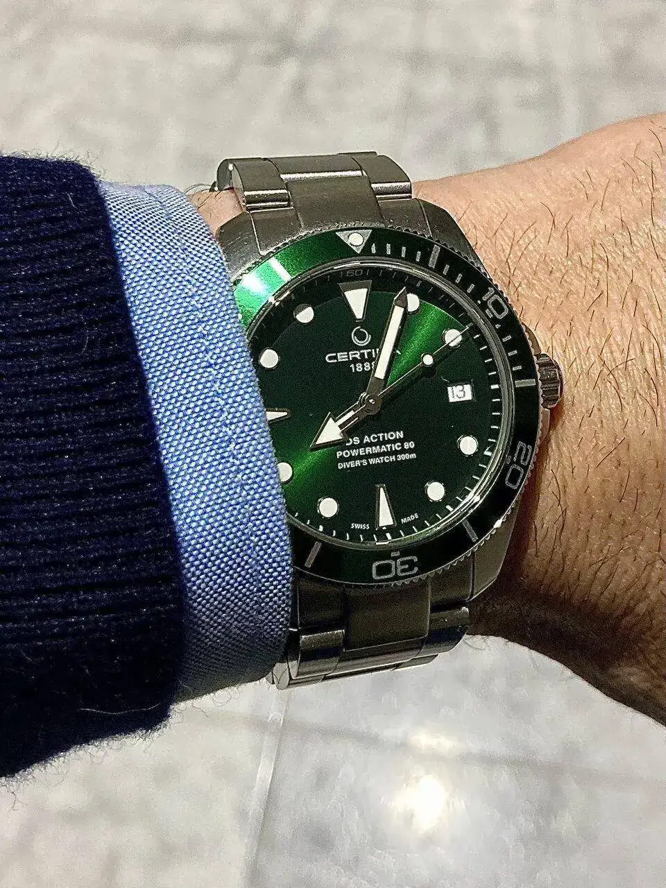 pues el caso es que me voy a comprar en los proximos dias mi primera gran pieza, ya que hasta ahora mi rey en la caja a sido un seiko tortuga dorado. El afortunado es un certina ds action diver, el nuevo, el de bisel ceramico. Hoy los he estado viendo (a excepcion del negro, que no lo tienen hasta la semana que viene) y tengo un problema. Me gustan los 3.
