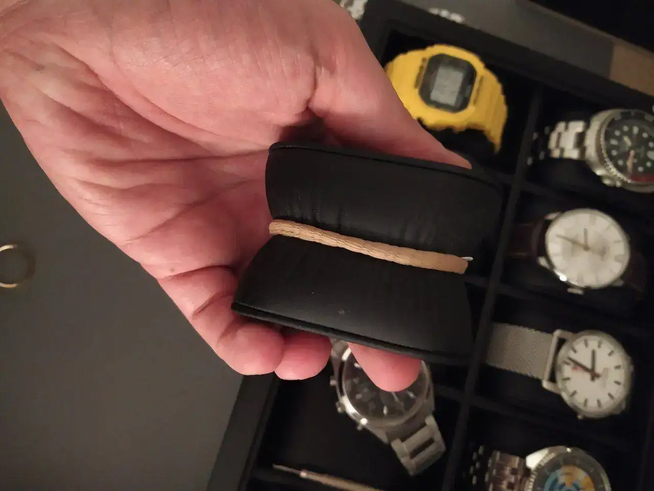 Soy nuevo en el foro, y también bastante nuevo en esta afición de coleccionar relojes (de momento muy poquitos y muy humildes). Quería aprovechar para haceros una consulta. Resulta que me acabo de comprar una caja para ir organizando la colección (que espero vaya creciendo) de estas típicas de Amazon de 30 euros. El caso es que soy de muñeca pequeña (16,5 cm aprox) y me encuentro que los relojes que tengo con armis de acero en las almohadillas que trae la caja ( de unos 7x3 cm ) cierra bastante justo, teniendo que presionar más de lo que me gustaría para poder mantenerlos cerrados. El caso es que tengo dudas acerca de si eso puede hacer que las correas estén en tensión y acaben cogiendo mucha holgura. No es que parezca que vayan a reventar de la tensión, pero si creo que soportan más de la que lo harían en mi muñeca. ¿Opináis que sería mejor guardarlos sin cerrar la correa para evitar problemas?