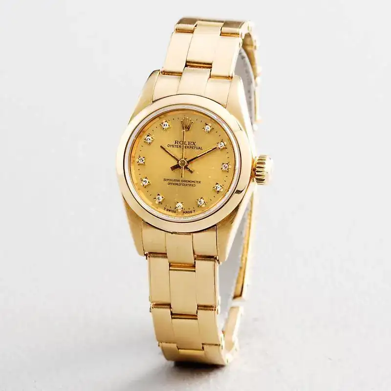 Como siempre, acudo a la mas alta instancia relojera cuando tengo dudas sobre alguna piecita. Tengo por casa un Rolex de mujer, Oyster Perpetual con esfera azul y números lanza. Todo en oro 18k, sin brillantes ni nada por el estilo. El caso es que lo he buscado por todas partes, incluido Chrono24, pero no aparece. Alguien puede ilustrarme sobre Oyster Perpetuals en oro para mujer SIN CALENDARIO? Como aqui hay tanto rolexfilo estoy seguro de que me podreis echar un cable.