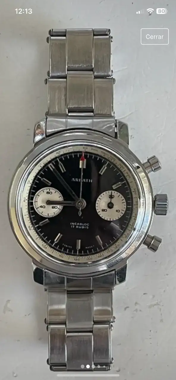 Bueno, después de bucear bastante por páginas de compraventa de diversos artículos buscando diferentes relojes divers y cronógrafos antiguos he acabado dando con este cronógrafo setentero de la marca Ardath que monta una mecánica Landeron 248.