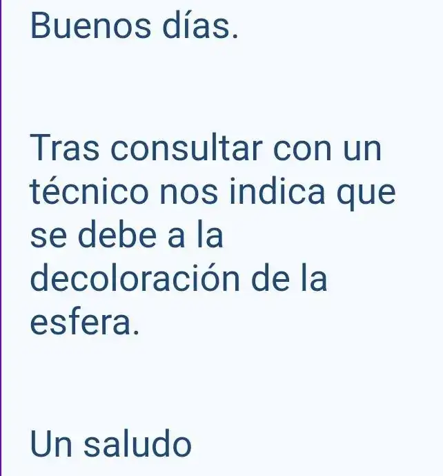 Al recibir esta contestación, intenté explicarles que con 4 años, me parecía que certina podría proporcionarme alguna opción ó interés en solucionar, lo que para ellos es un problema en la calidad del coloreado de ese dial. Ya no he recibido ninguna contestación más.