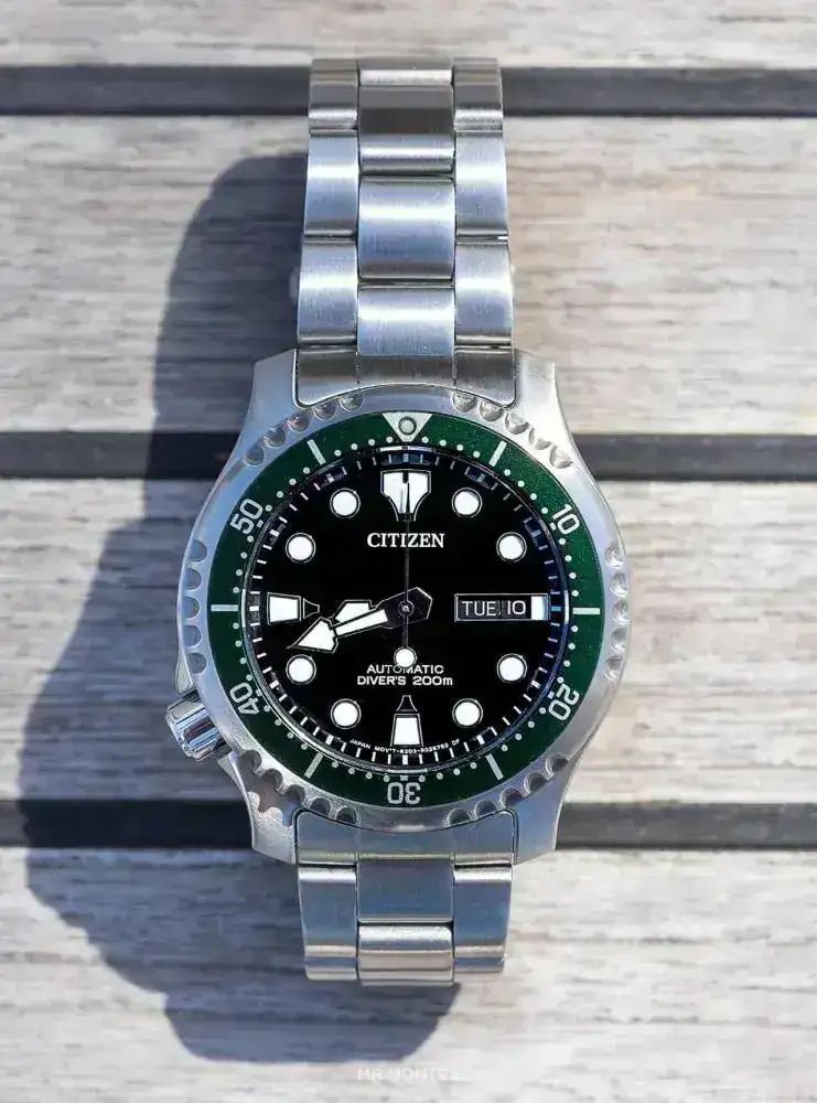 2. CITIZEN PROMASTER NY0084-89E[/h]Estéticamente me gusta mas el NY0084, es automático y tiene la corona a las 8 que es muy característico pero me tira un poco para atrás su brazalete de chapas dobladas. En cambio el BN0151 su punto fuerte es su brazalate de links sólidos, su movimiento eco drive, la estética me gusta también, pero no tanto y es un poco más grande de tamaño. Tienen un precio similar, por lo que no va a decantar la balanza entre uno y otro.