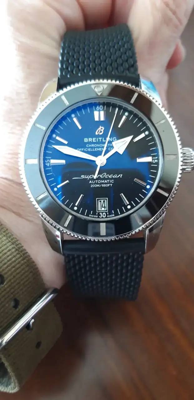 Gracias por tu experiencia, el modelo heritage me gusta pero le falta ese puntito que veo en los de bisel de aceroLos dos son muy rotundos. No me convence mucho lo del bisel de caucho si bien he de decir que, según mi experiencia, es bastante longevo. Ahí va una foto (de archivo) de mi SuperOcean en una versión posterior a la que enseñas.