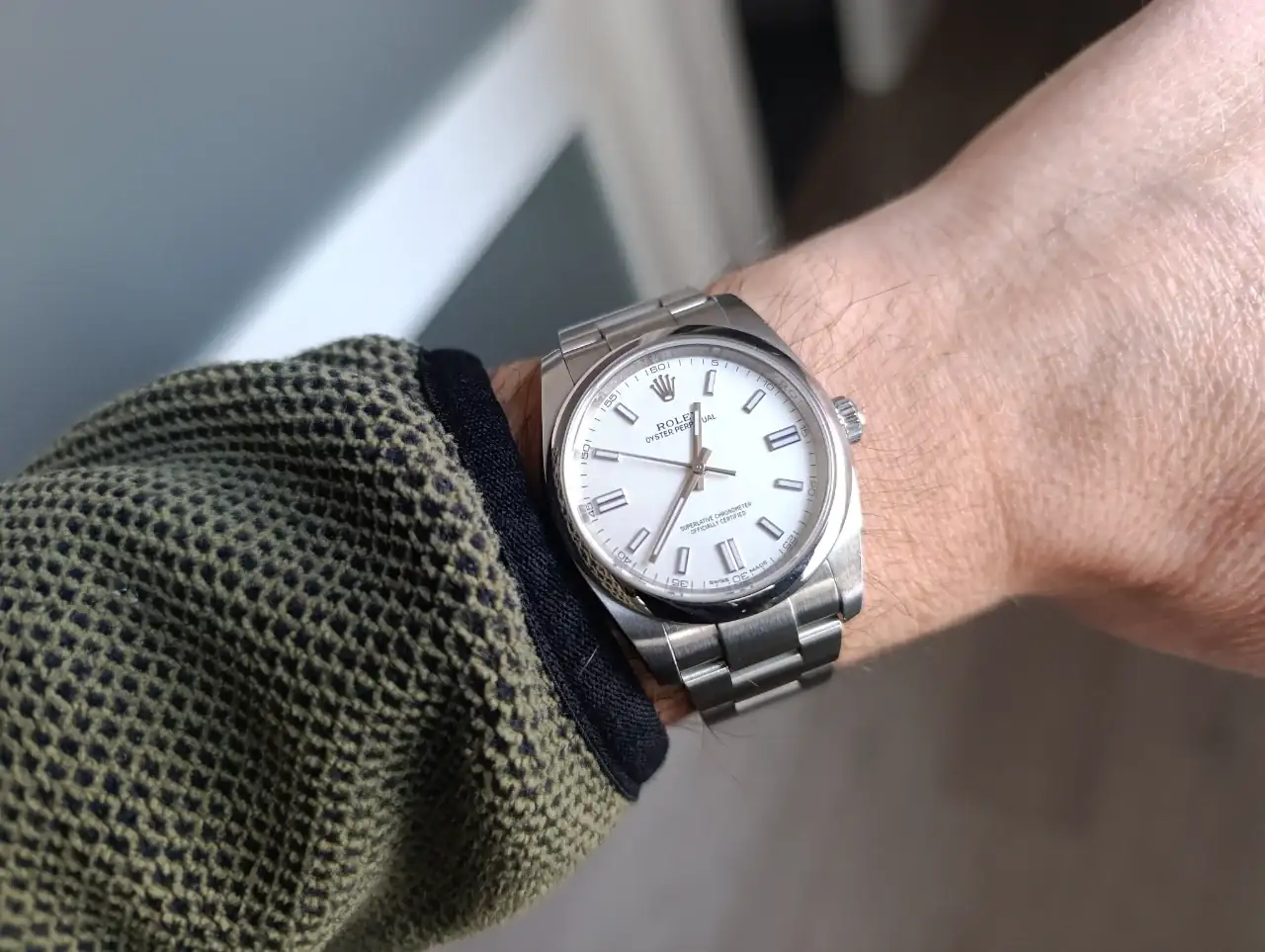 Acertada decisión 😉Después de poder probarme El OP 36 y 41 y Explorer en 36 y 40, la elección ha sido, sin ningún tipo de duda, el OP en 36mm, me sienta increíble en la muñeca y he sentido esas mariposas en el estómago jajaja.