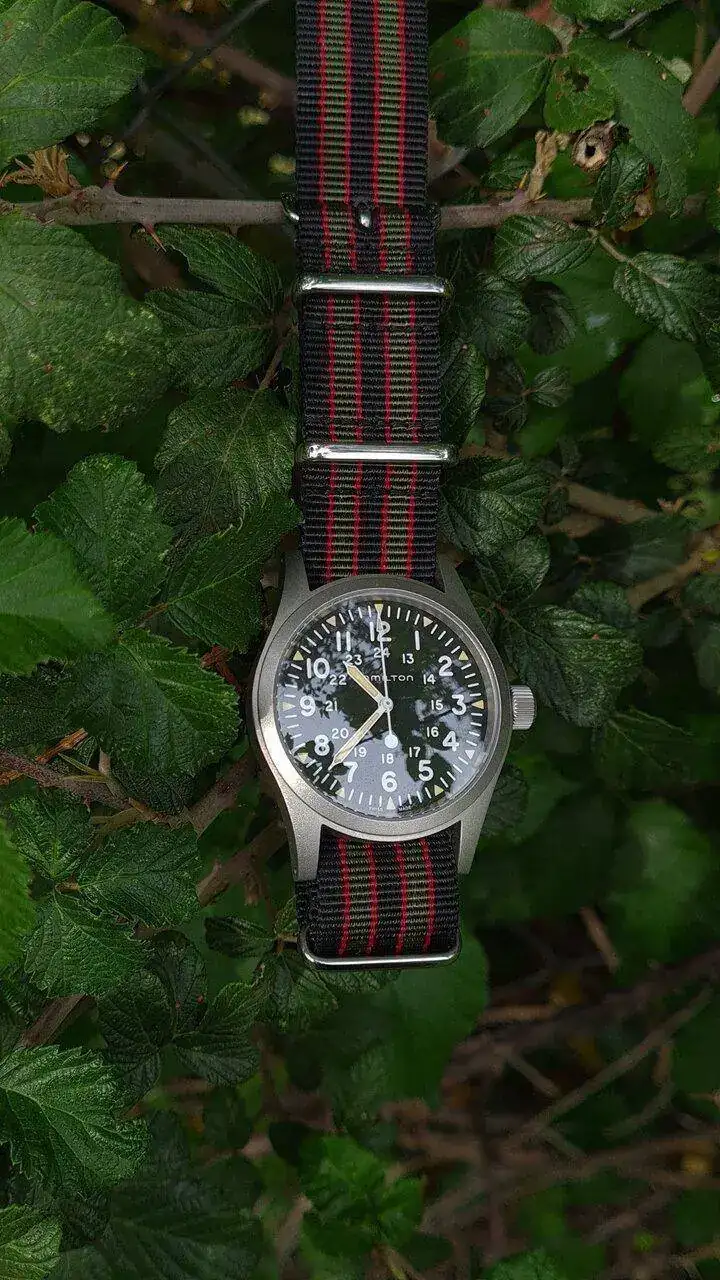 En mi caso la verde de serie es lo que menos me gustaba del reloj, la tengo casi a estrenar, la puse el primer día, y porque no tenía otra. Ahora tengo la gris negro de Hamilton y montones de NATOS, que conjunto según lo que lleve. Muy agradecido para ello el marrón lo veo más limitado en ese aspecto
