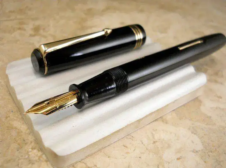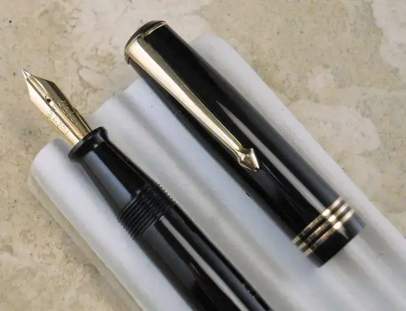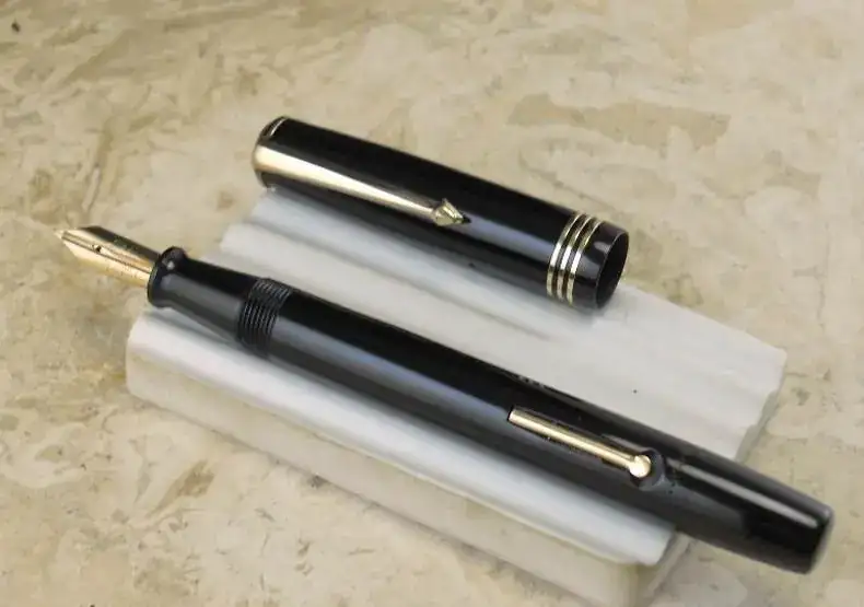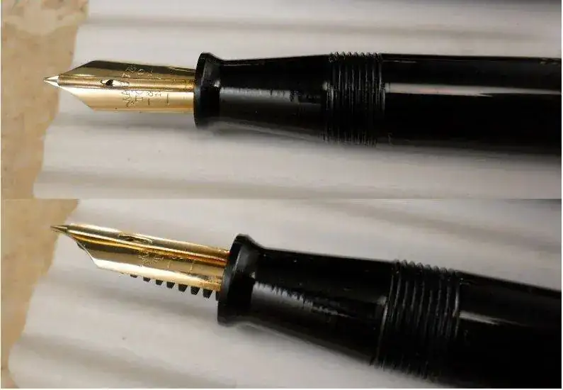 He estado mirando por la web para ver si conseguía algo interesante con plumín flexible y he encontrado una Swan Mabie Todd de 1920 con plumín tipo Stenograph. El problema es que tengo dudas respecto al clip por otras imágenes de Swan de esa época, os adjunto imagen: