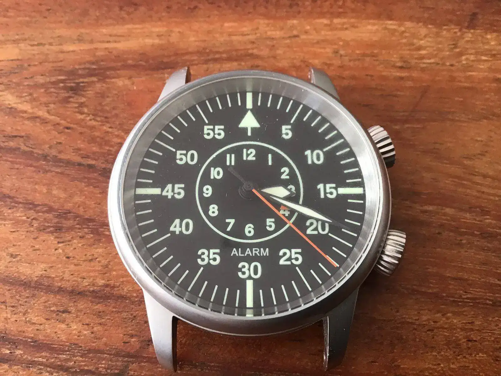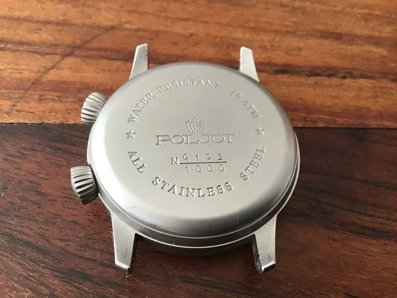 me he informado que habia 5 empresas oficiales que fabricaban este tipo de relojes militares , pero que que otras marcas han hecho reinterpretaciones , está en concreto es de al tipo B por lo que he leído la llaman “flugkapitan” ; pero este modelo concreto con alarma y esta trasera (Poljot) no encuentro nada ni en la página del fabricante !!