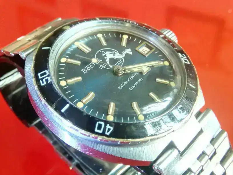 Lo primero que no me cuadra es que el reloj parece ser ruso pero la tapa trasera reza "swiss made", personalmente, me chirría.
