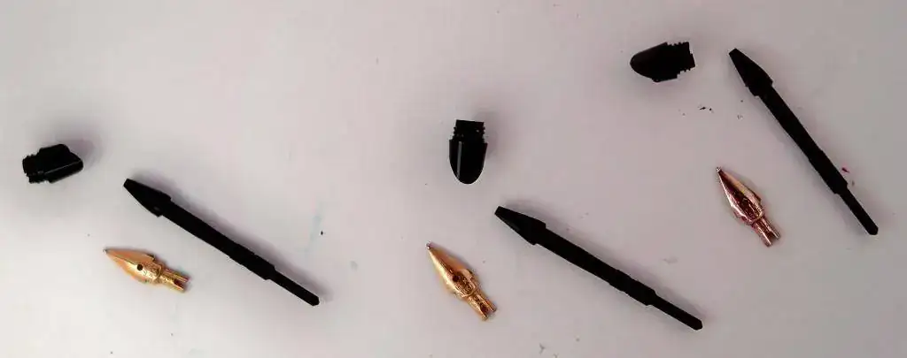 El plumín rasca a veces, como sí un gavilán tropezase con otro (cuando la pluma queda ligeramente girada al hacer los trazos). He intentado desenroscar el carenado de la sección pero no sale ni a tiros... así que no veo la facilidad para cambiar esos plumines.