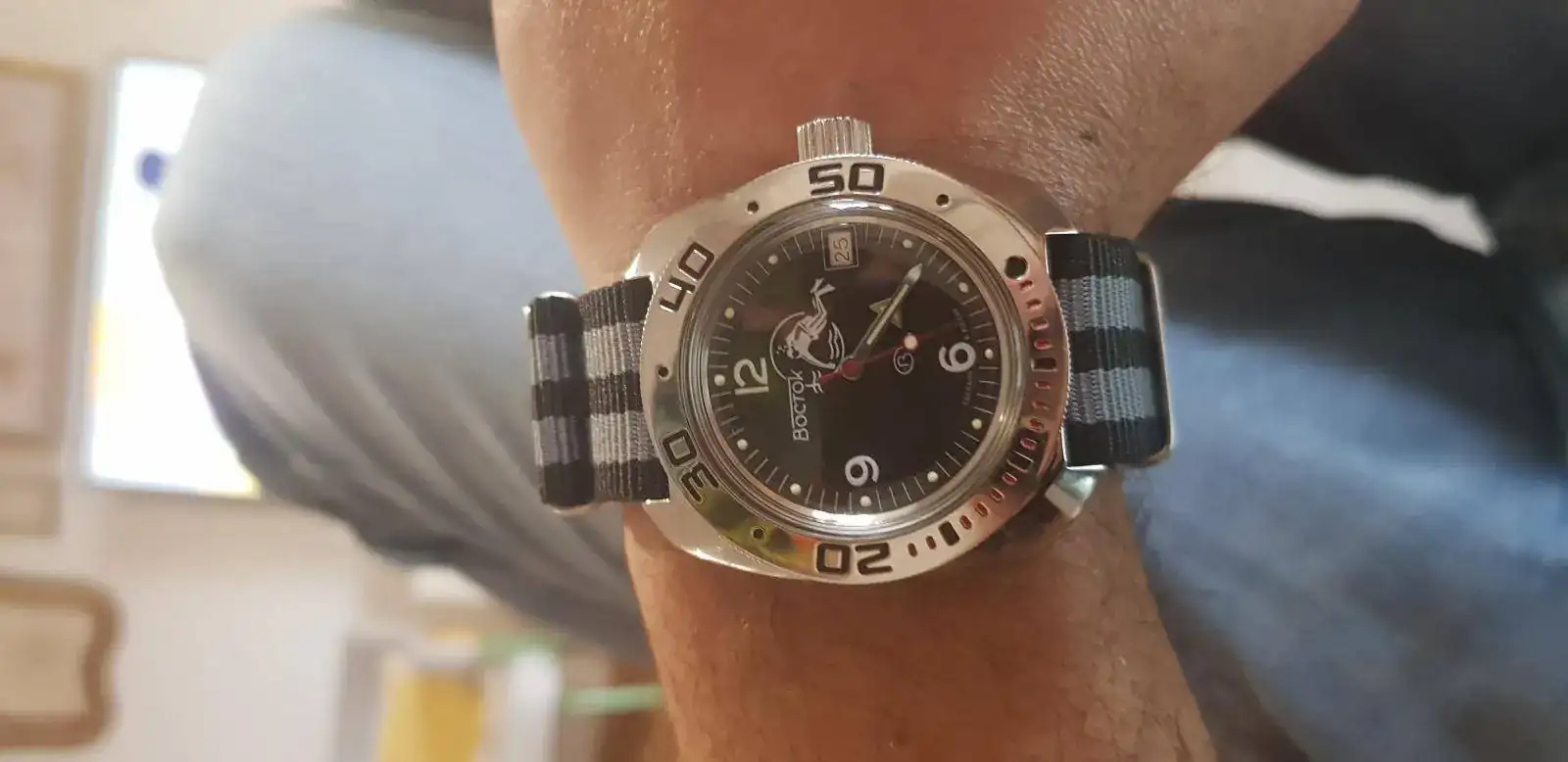 Como ya expresé en otro hilo tengo pensado pillarme un vostok, concretamente el Amphibia 710059. El problema es que estoy pensando que igual me queda muy exagerado en la muñeca ( mi muñeca mide unos 17 cm) y quería saber un poco opiniones de gente que lo tenga porque si que he estado mirando medidas del reloj en internet (41 mm tota de caja según menarom y 46 según komandirskie , y 22 cm de ancho de correa) pero es dificil saber como queda hasta tenerlo puesto.