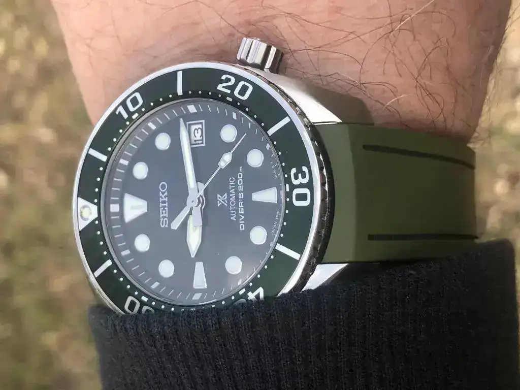 Otra alternativa que te propongo es el Orient Kamasu (mal conocido como Mako III) en verde, es un poco dificil de conseguir, pero el verde es muy bonito a la luz del sol, y ademas con cristal de zafiro, mejor que el hardlex de Seiko en mi opinión.